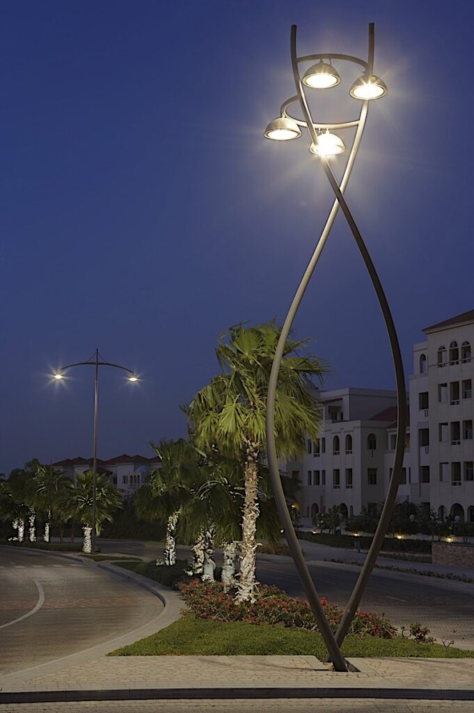 Poles, luminaires and lamps were all consolidated to minimize warehousing needs. Lamps were chosen for their low wattage long-life and good color rendition properties. We worked closely with the Development Owner to extend his identity and brand throughout the emirate, while also acting as a liaison to the Dubai Municipality and other city offices to ensure we were within the city and country standards and guidelines for street and roadway lighting. “Our objective was to develop an organic solution for the pole and luminaire. A design that would be simple and elegant, while also functional and timeless”.